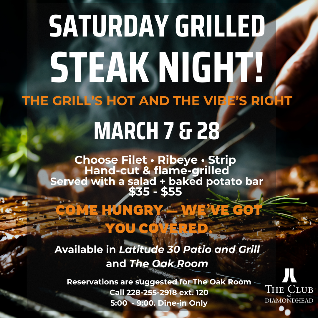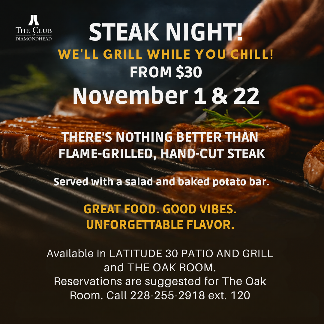 The Oak Room serves up tantalizing dishes in a classy yet casual atmosphere. An excellent ala carte menu, Chef Specials, Sunday Brunch, and special events are offered. For a more relaxed setting, Latitude 30 Patio and Grill is open daily and offers a casual atmosphere to kick back with your favorite beverage and enjoy a bite to eat and the view.